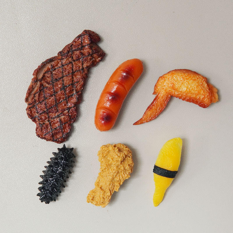 อาหารจำลอง ไก่ย่าง ขาไก่ สเต็ก ไส้กรอก ปลิงทะเล แม่เหล็กติดตู้เย็น 3 มิติ กึ่งอัตโนมัติ กึ่งกลไก