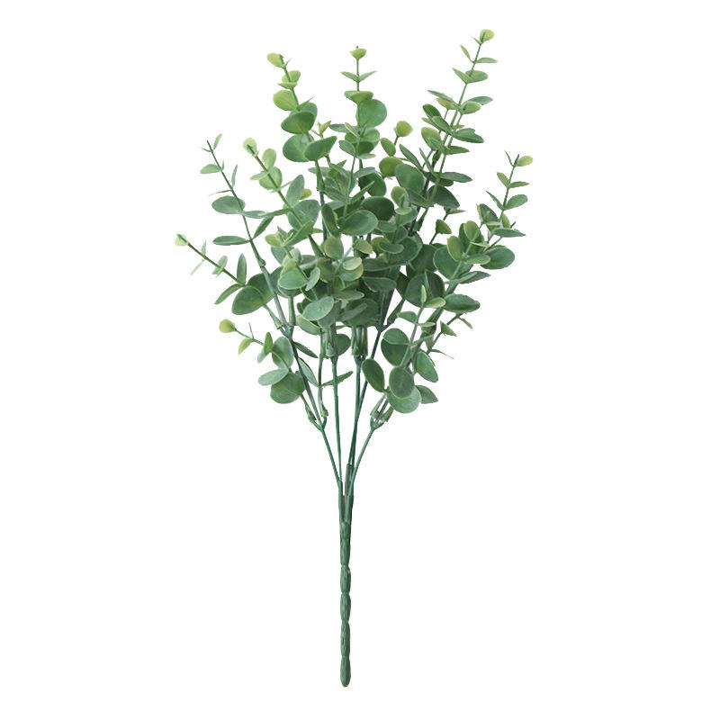 ต้นยูคาลิปตัสพลาสติกปลอม 5 กิ่ง ดอกไม้ประดิษฐ์สีเขียวฤดูใบไม้ร่วง ต้นบอนไซใบเงิน