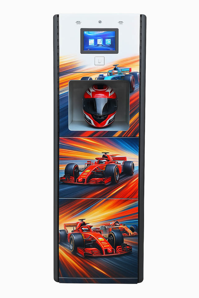 เครื่องจำหน่ายหมวกกันน็อคในเชิงพาณิชย์ที่ทันสมัยของสิงคโปร์พร้อมเทคโนโลยีละอองฝอยไฟฟ้าใหม่เอี่ยม