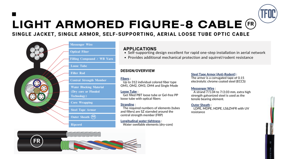 เกราะเดี่ยวท่ออากาศสายไฟเบอร์ออปติกแบบหลวมรูปที่8 12C ขั้วต่อด้านนอก HDPE 60C 48C 24C