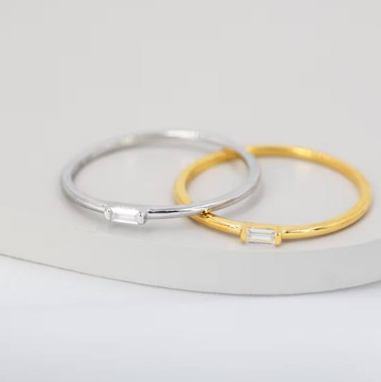 Single Baguette CZ Ring in Sterling Silver Silver or Gold Minimalist CZ Ring