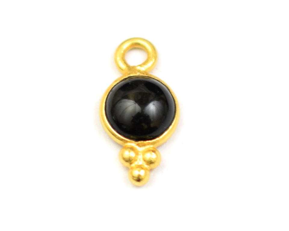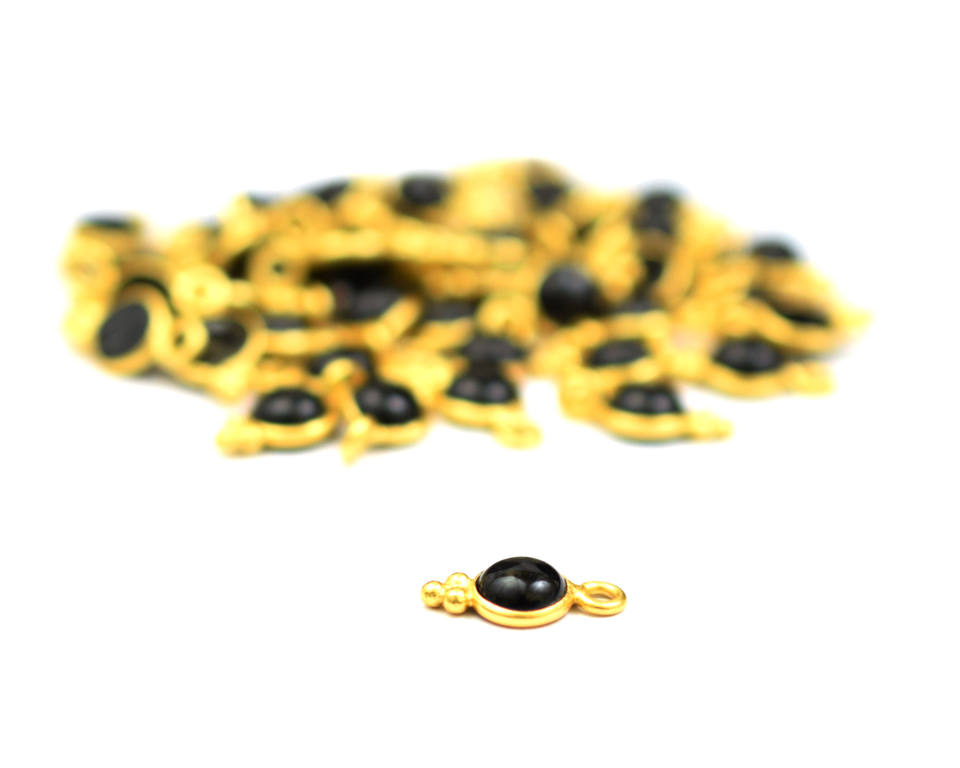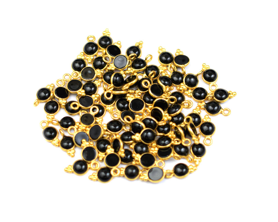 เงินประกันตัวเดียว4มม. สีดำพลอยนิลชุบทองสำหรับทำเครื่องประดับทำด้วยมือด้านเดียวแบบแบนตัวเชื่อมต่อแบบมีขอบ