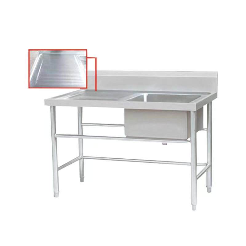 อ่างล้างหน้าเดี่ยวพร้อมแผงระบายน้ำ201สแตนเลสอุปกรณ์ครัวที่จำเป็นสำหรับโรงแรมและร้านอาหาร