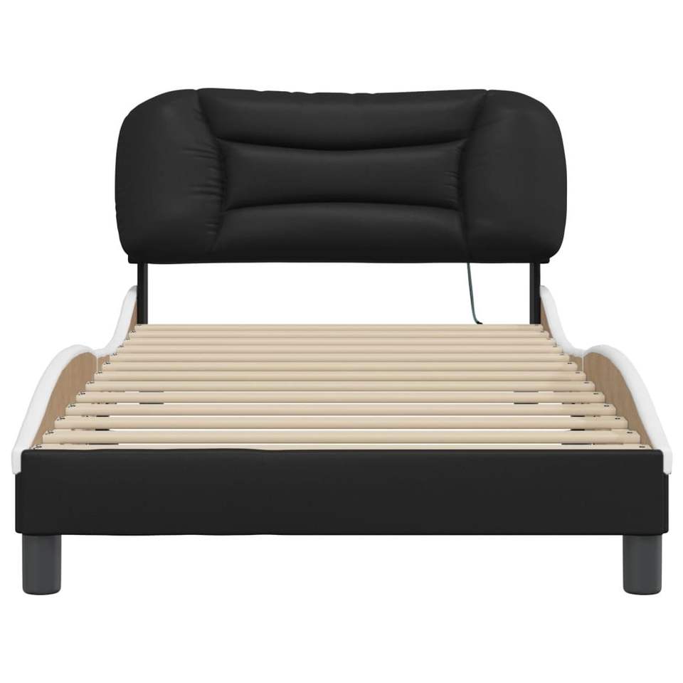 โครงเตียงเดี่ยวหุ้มหนังเทียมสีดำทรงสี่เหลี่ยม