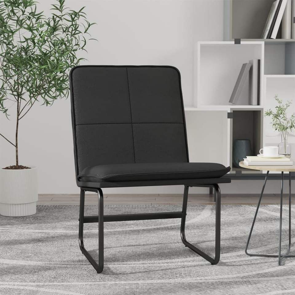เก้าอี้พักผ่อนหนังเทียมสีดำเดี่ยวพร้อมโครงไม้อัดโลหะสำหรับห้องนั่งเล่น