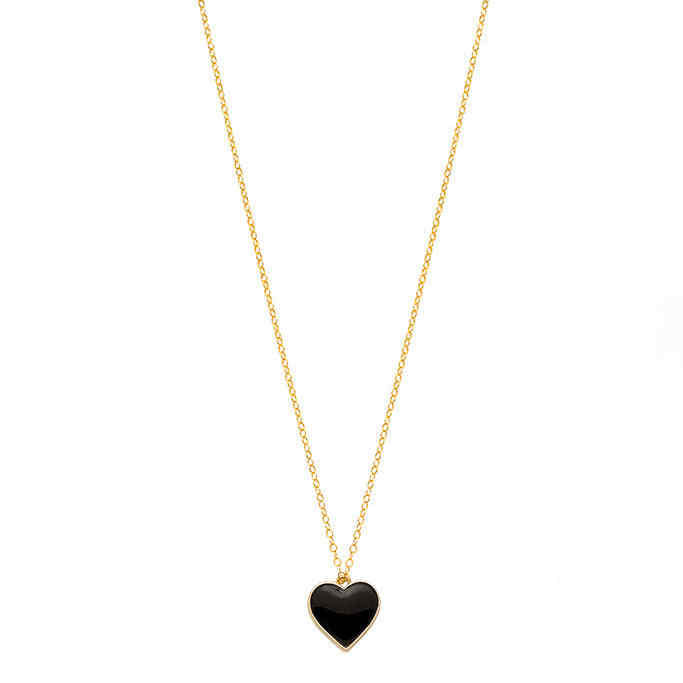 สร้อยคอจี้รูปหัวใจสีดำเคลือบทองพร้อมตัวล็อคแม่เหล็ก