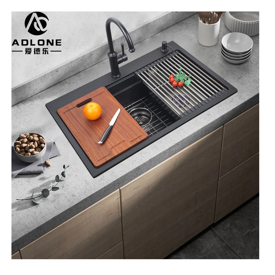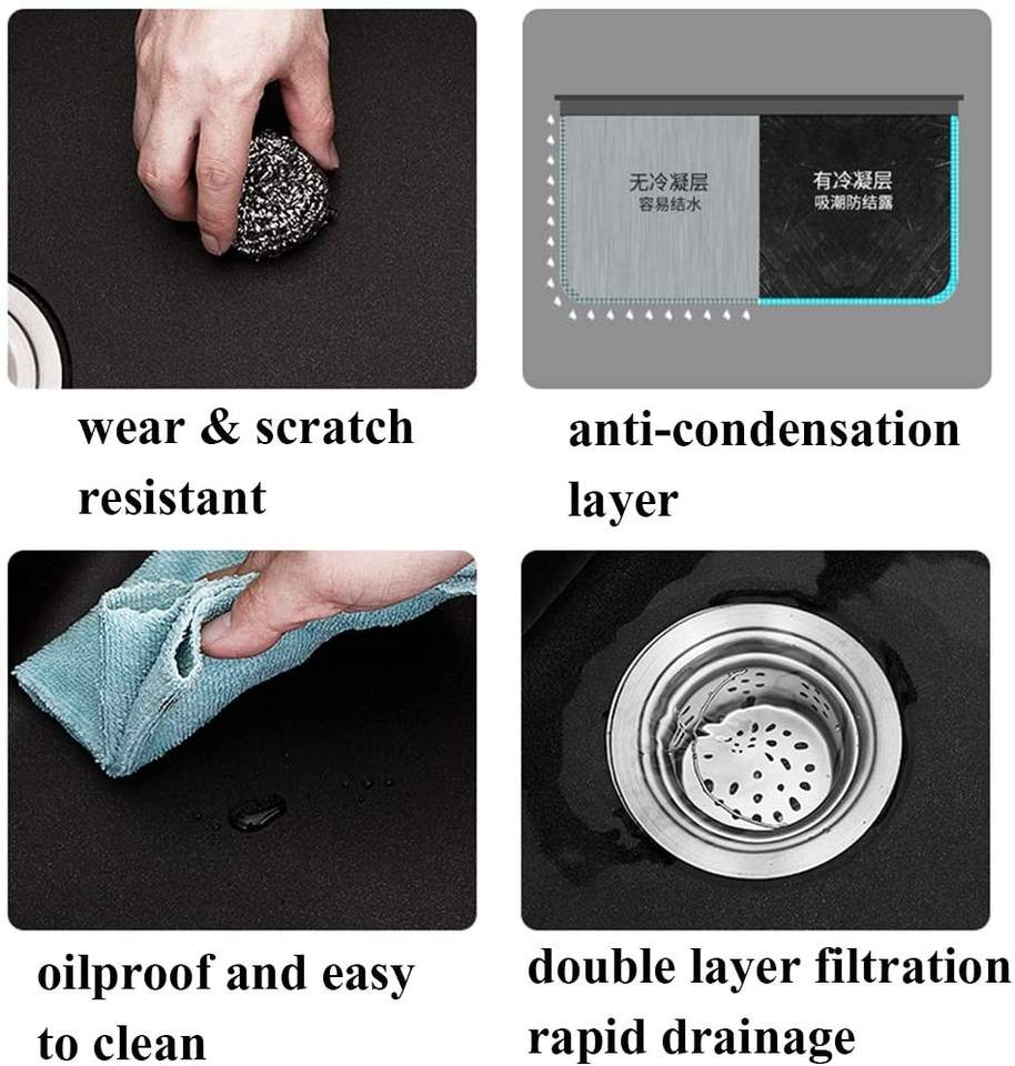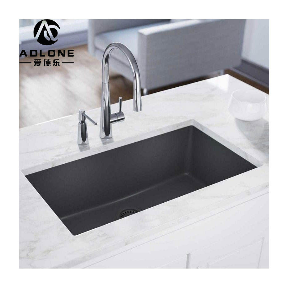 อ่างล้างจานหินควอตซ์สีดำแบบเดี่ยวใช้ติดตั้งด้านล่างเป็นรูปสี่เหลี่ยมผืนผ้าใช้ติดตั้งวัสดุหินแกรนิต