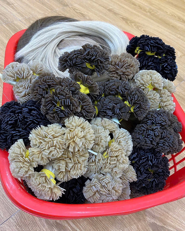 เคราตินปลายแบนแบบลอนผมต่อแบบคู่ผมดิบจากผู้บริจาครายเดียว