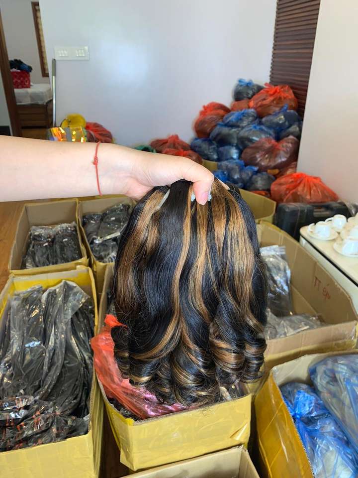 วิกผมลูกไม้จากเวียดนามผมแท้สีเปียโนเด้ง