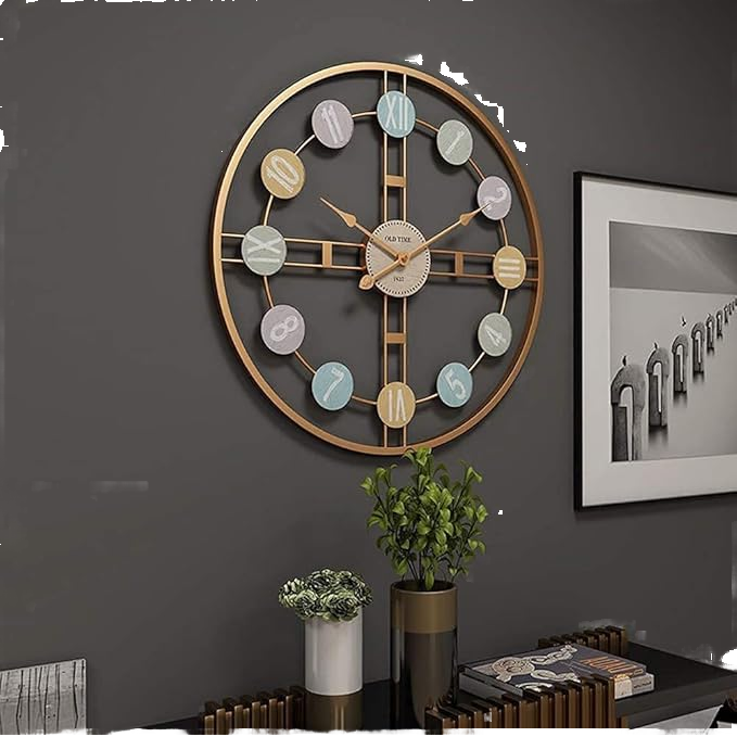 นาฬิกาแขวนผนังโลหะหน้าปัดเดียว ดีไซน์อาร์ตเดโค นาฬิกาตกแต่งผนังสำหรับบ้าน ห้องนั่งเล่น ห้องนอน สำนักงาน เงียบไร้เสียงรบกวน