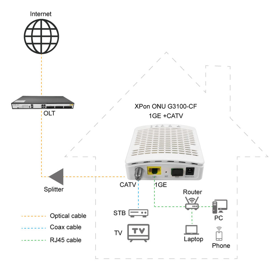 พอร์ต:1 * Ge + 1 * PON + CATV