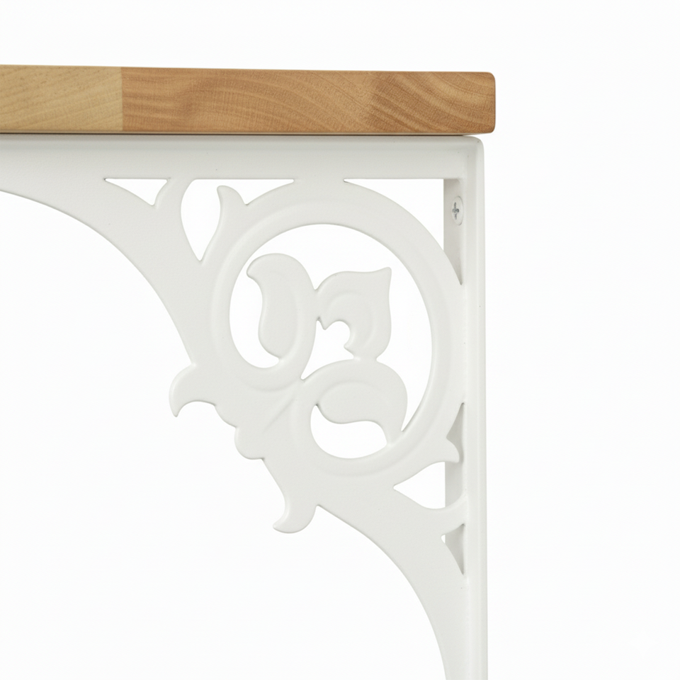 ชั้นวางของติดผนังไม้สีขาวลายดอกไม้เดี่ยวขนาดเล็ก ดีไซน์สวยงามสำหรับตกแต่งห้องนั่งเล่น ห้องนอน ห้องน้ำ