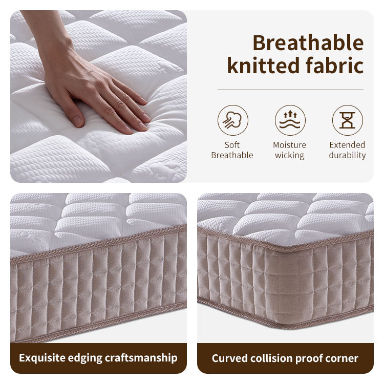 ที่นอนสปริงแบบพ็อกเก็ตคอยล์ขนาดฟูลไซส์สำหรับโรงพยาบาล ผ้าถัก 400 กรัม/ตร.ม. เป็นมิตรกับสิ่งแวดล้อม โฟมเย็บติดแบบไม่ใช้กาว