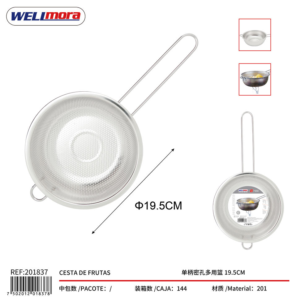 เวลิโมราตะแกรงกรองแบบด้ามจับเดี่ยว 19.5 ซม. ตะแกรงสแตนเลสแบบรูถี่สำหรับผลไม้และผัก อุปกรณ์ครัว