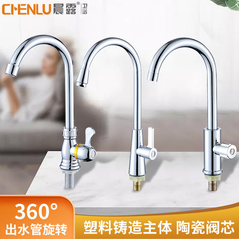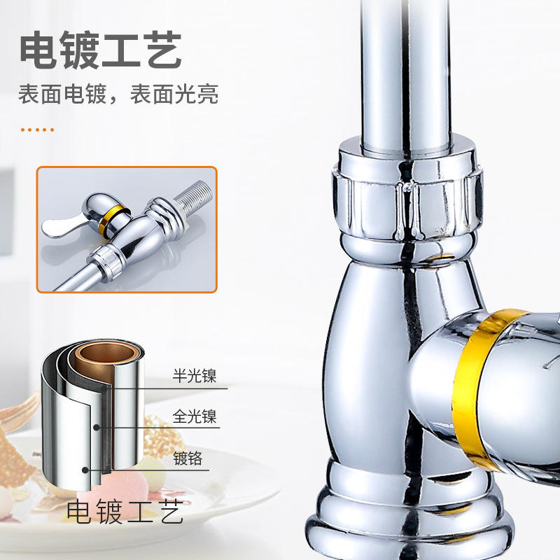 ก๊อกน้ำห้องครัวแบบก้านเดียว โลหะผสมสังกะสี หมุนได้ 360 องศา แบบติดตั้งบนเคาน์เตอร์ วาล์วเซรามิก