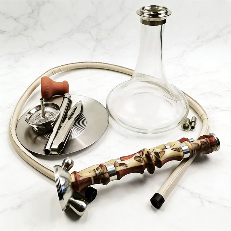 ชุดชิชาแบบสายเดี่ยวพร้อมก้านแก้วใส ฐานแก้วใส ปากสูบไม้ สำหรับสูบบุหรี่ชิชา