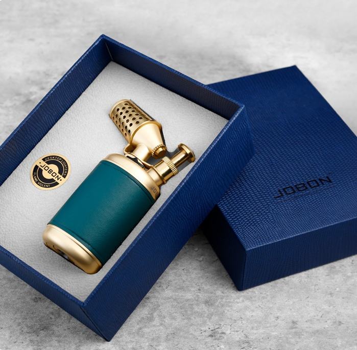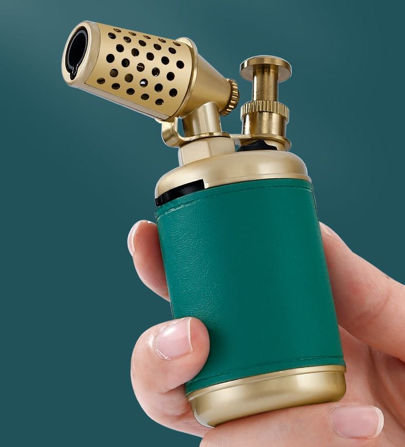 ไฟแช็คจุดซิการ์สีน้ำเงินแบบเดี่ยวไฟแช็คกันลมอุณหภูมิสูงตรงปืนที่จุดระเบิดซิการ์ทนทานการรมยาตัวจุดแก๊สแบบพิเศษ