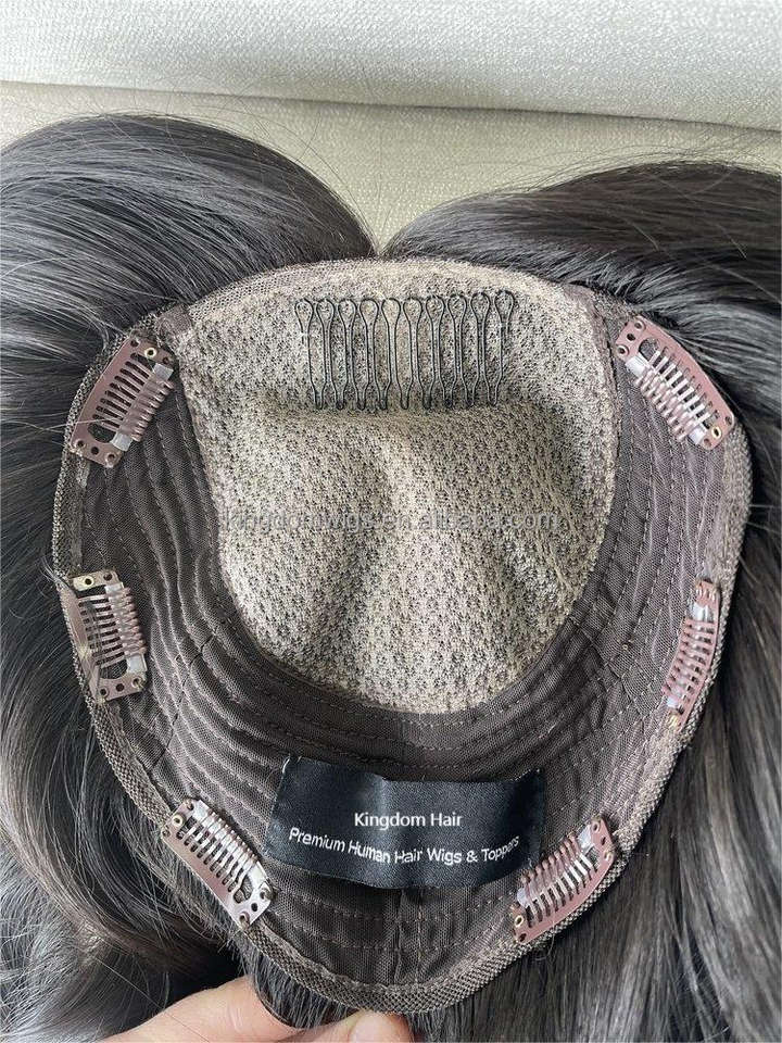 ท็อปเปอร์ผมลูกไม้แบบผูกปมเดี่ยว ผมยุโรป ไม่ต้องใช้กาว ตาข่ายเพชร พร้อมผมปิดด้านหลัง/วิกผมสำหรับผู้หญิงที่มีปัญหาผมร่วง