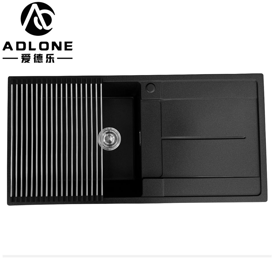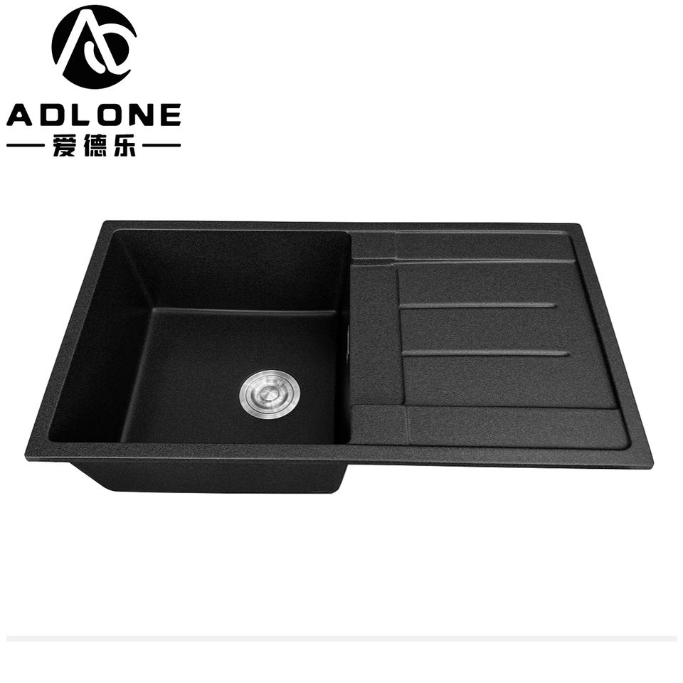อ่างล้างจานควอทซ์ขนาดใหญ่แบบเดี่ยวอ่างล้างจานห้องครัวหินแกรนิตอ่างล้างจานห้องครัวพร้อมที่ระบายน้ำ