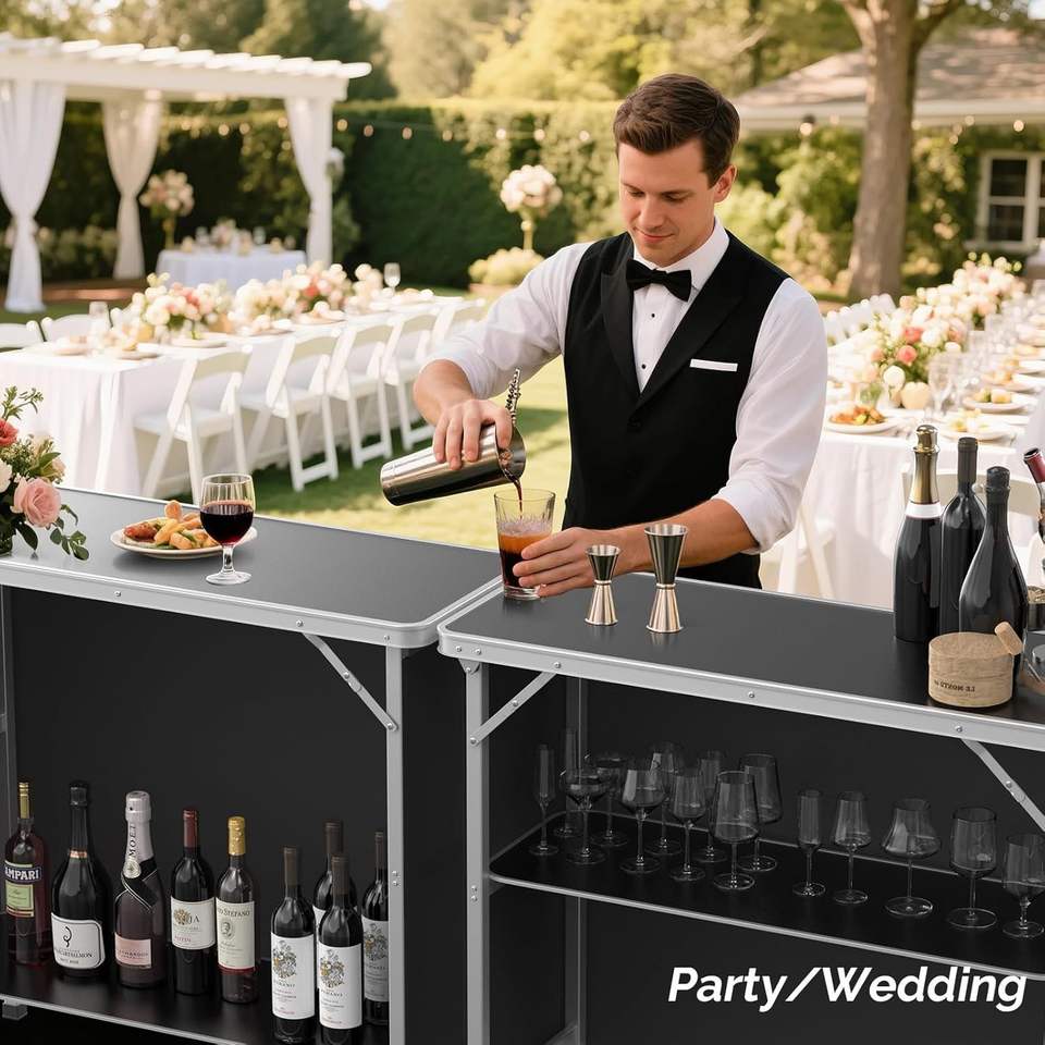 Single Layer 8mm Panel Rectangle Outdoor Serving Tabletop Portable Aluminum Folding Bar Table Black Skirt Bag 39.4 X 15 X Table