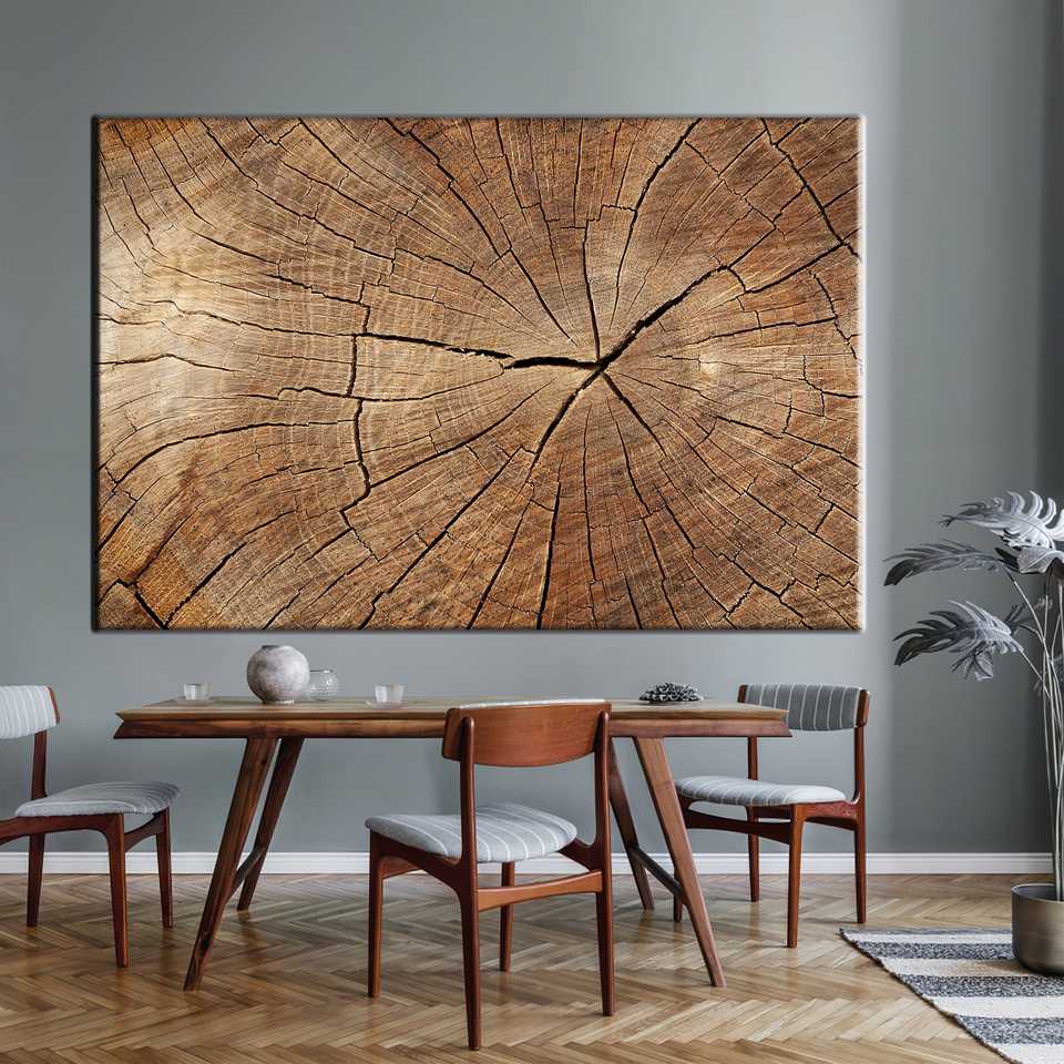 ภาพพิมพ์บนผ้าใบลายวงแหวนต้นไม้สไตล์อาร์ตเดโคสมัยใหม่ พร้อมกรอบไม้ลายไม้แบบโปร่งใส ภาพศิลปะนามธรรมสำหรับแขวนผนัง