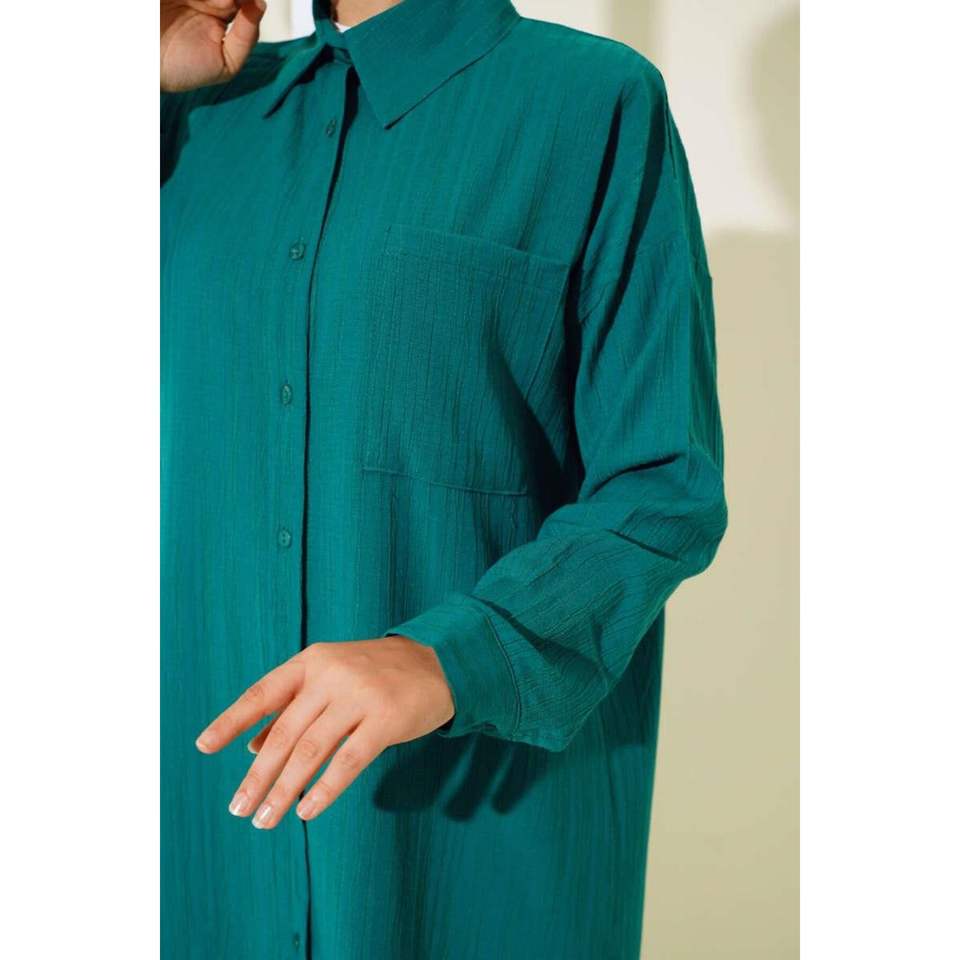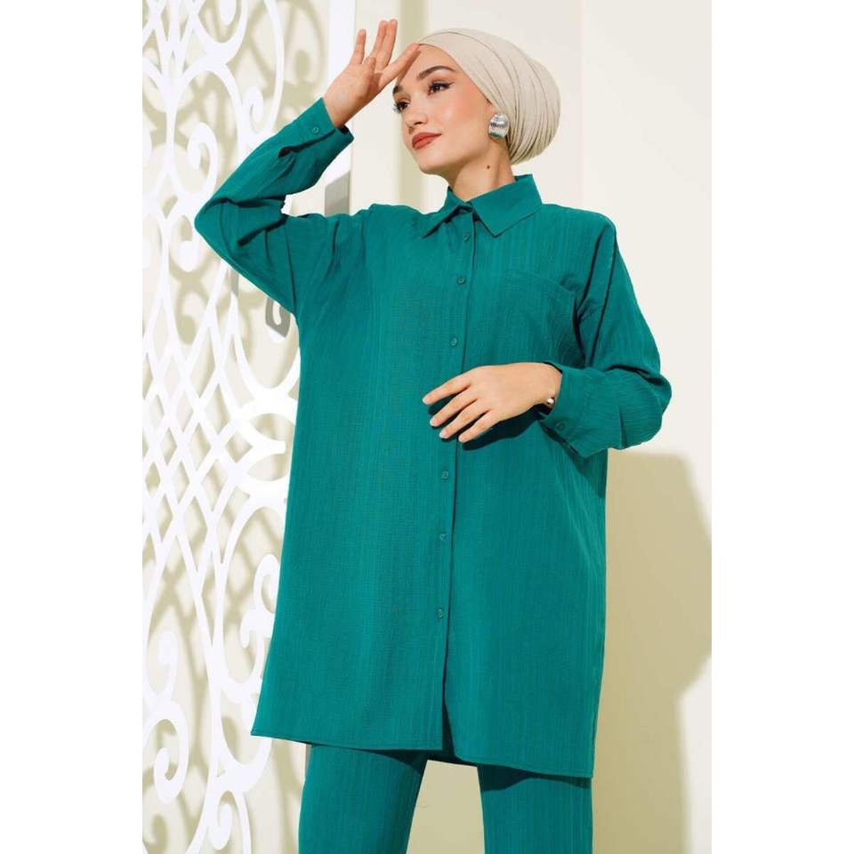 ชุด2ชิ้นผ้าลินินกระเป๋าเดี่ยวสีมรกต