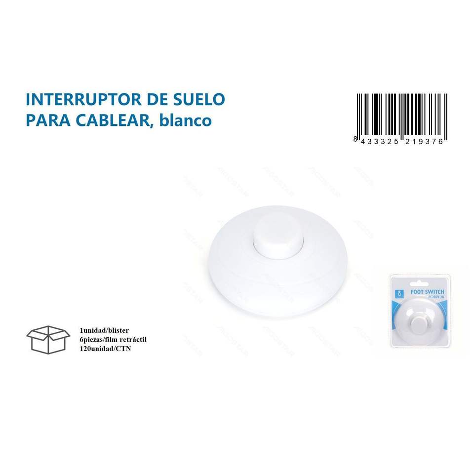 Single Pole Hardwired Floor Switch White PC Material 220V Max. Voltage for EU/UK Standards with Screw Wiring