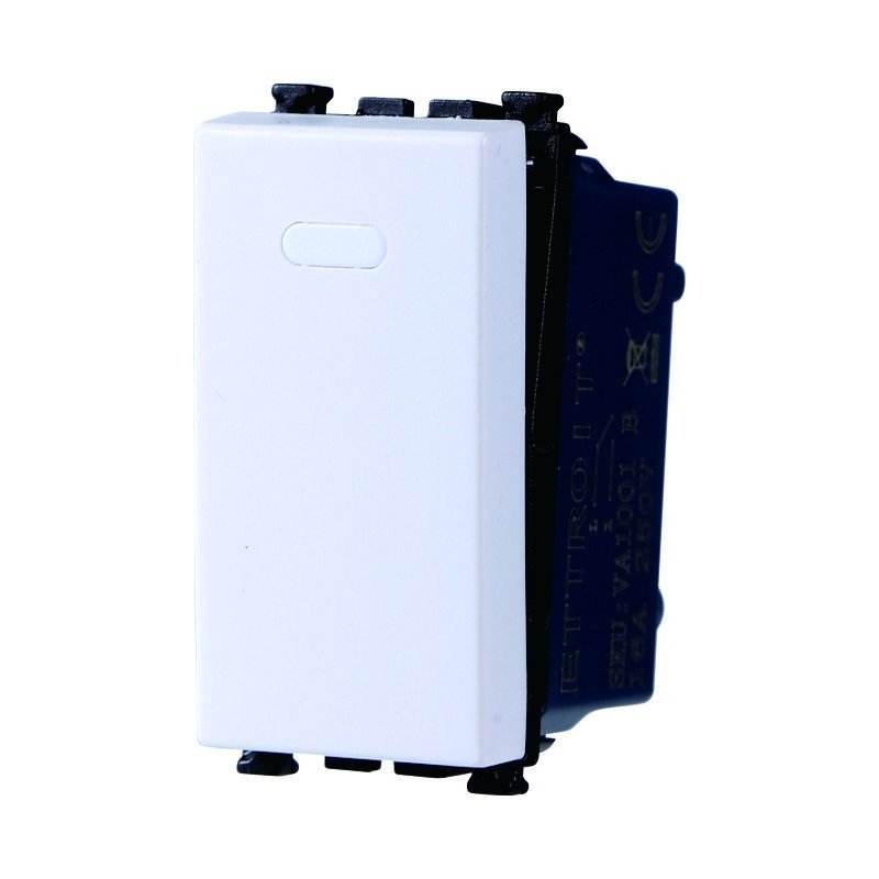 สวิตช์ปุ่มกดแบบขั้วเดียว 1P 16A สีขาว ระดับการป้องกันน้ำและฝุ่น IP65 ใช้ร่วมกับ Vimar Arke ได้ รองรับกระแสสูงสุด 10A รูปทรงหัวแบน สวิตช์แบบ 1NO1NC