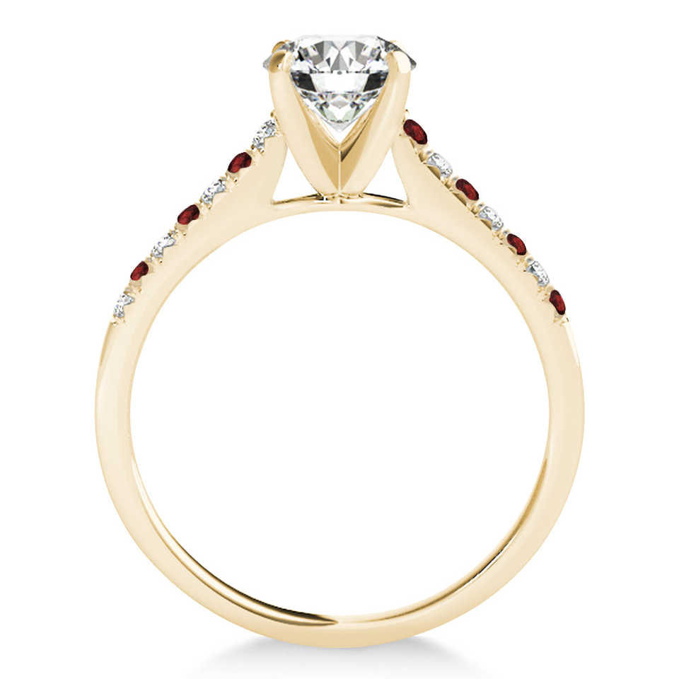 แหวนหมั้นแถวเดียวประดับเพชร 0.11 กะรัต และโกเมน แหวนเพชรทองคำ 18K สีเหลือง