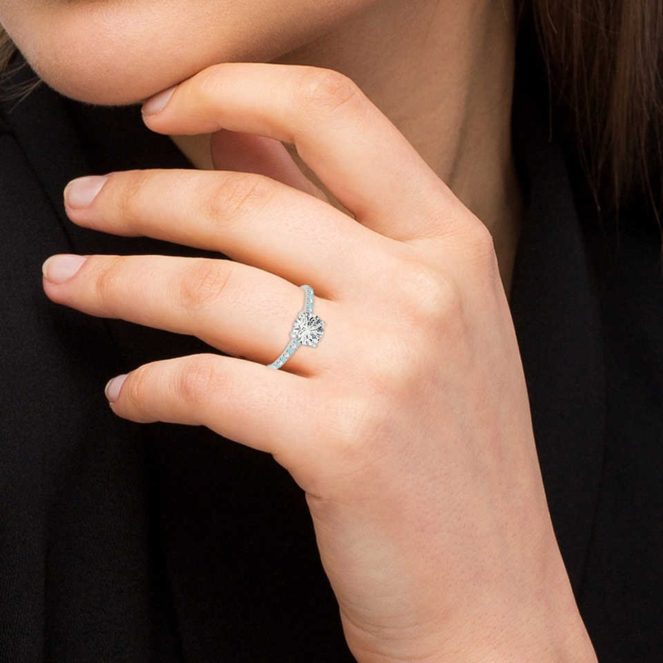 แหวนหมั้นแถวเดียวประดับเพชรและอะความารีน 0.11 กะรัต แหวนเพชรพาลเลเดียมดีไซน์หรู