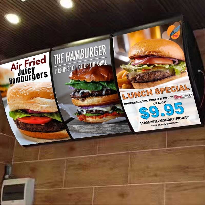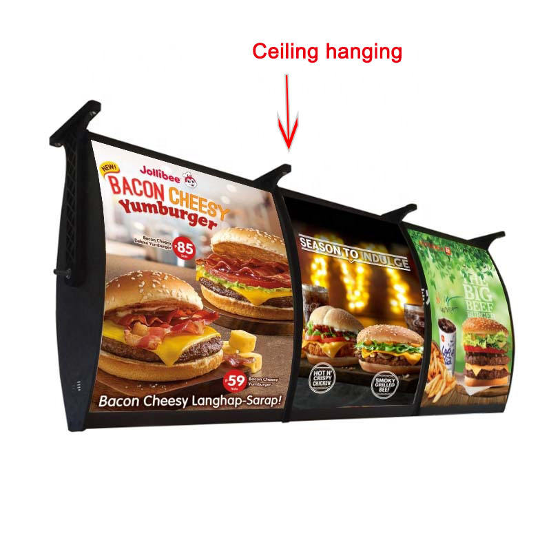 กล่องไฟ LED แบบโค้งด้านเดียว ป้ายเมนูเบอร์เกอร์ กล่องไฟ ป้ายโฆษณา