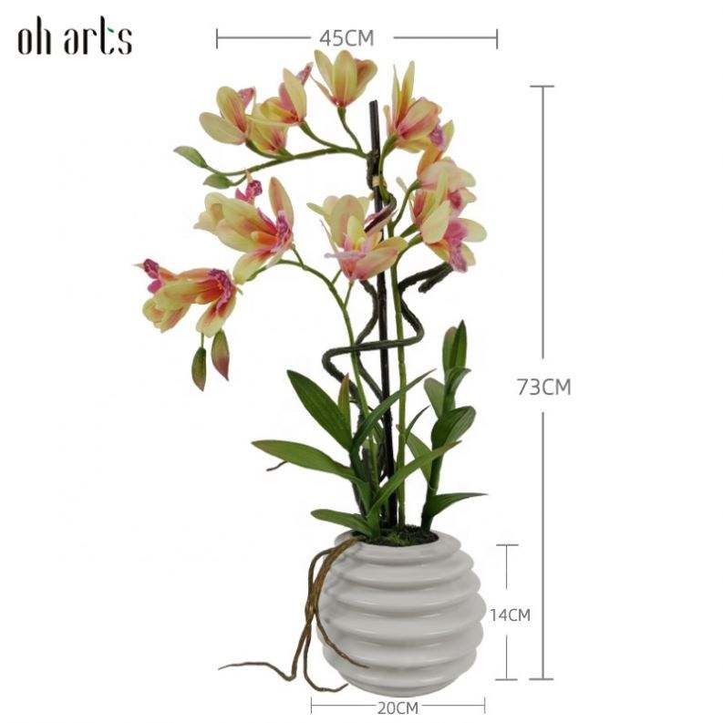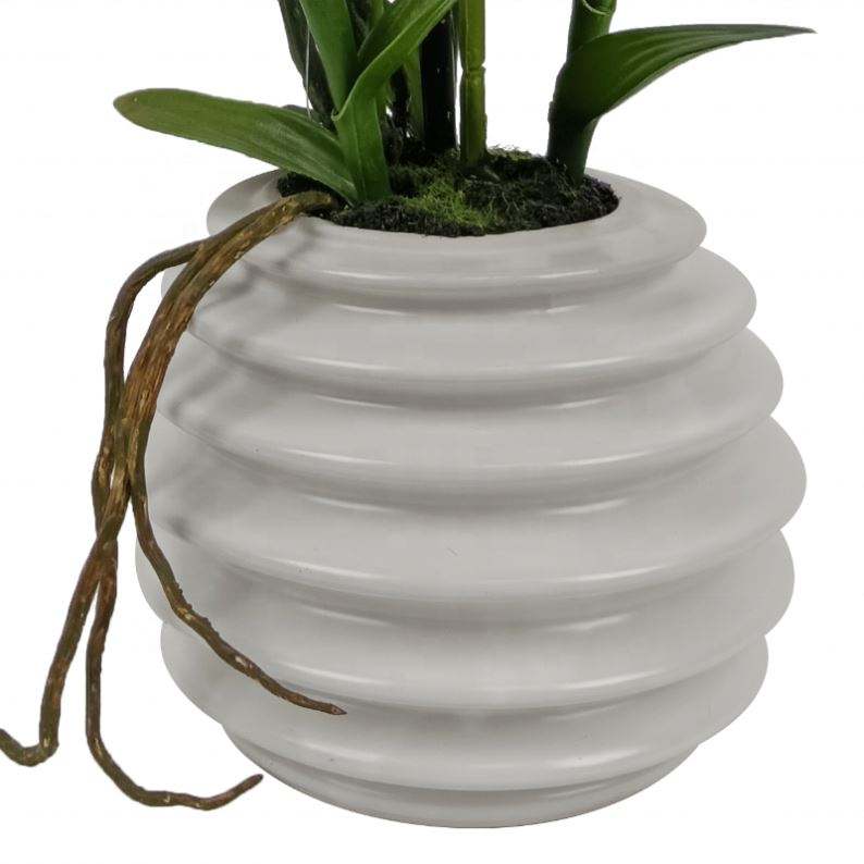 ดอกกล้วยไม้ฟาแลนนอปซิสสีขาวแบบก้านเดี่ยว ขายส่ง ดอกไม้ประดิษฐ์สัมผัสเหมือนจริง สำหรับตกแต่งภายนอกและภายในอาคาร