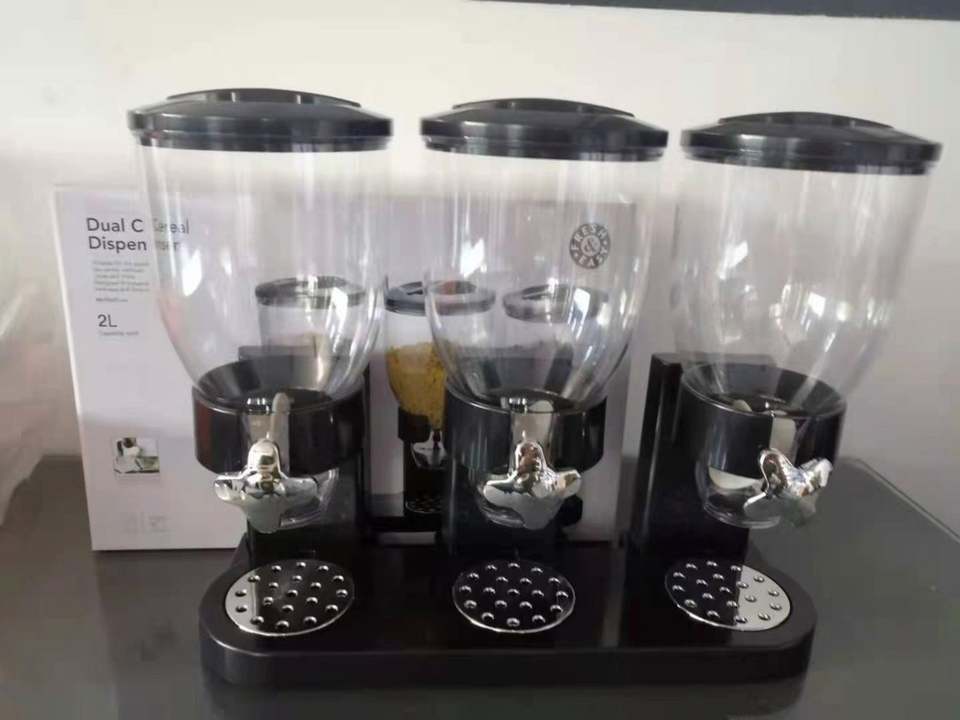 เครื่องจ่ายซีเรียลแบบถังเดี่ยวสามช่องสำหรับธัญพืช อาหารแห้ง และผลไม้อบแห้ง อุปกรณ์ครัว