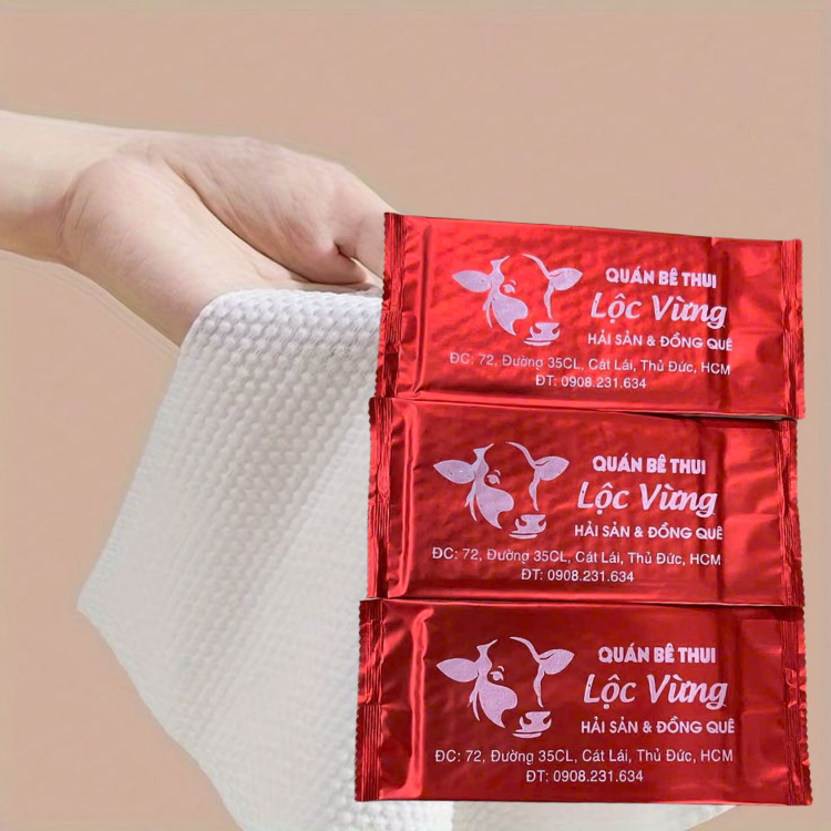 ผ้าเช็ดเปียกเนื้อนุ่มสำหรับร้านอาหารใช้ครั้งเดียวใช้งานสะดวกสำหรับการเดินทางดีไซน์ตามสั่งผลิตในเวียดนาม