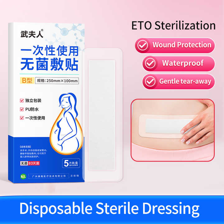 Single Use Sterile Cesarean Section Dressing - PU Transparent Waterproof Wound Plaster, 10x25cm, for Postpartum Care OEM ODM