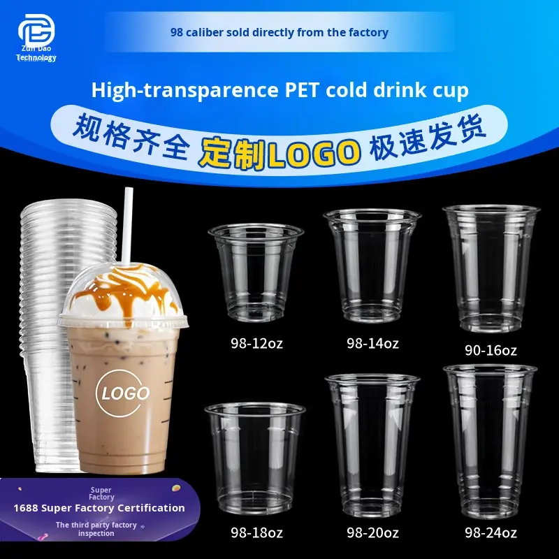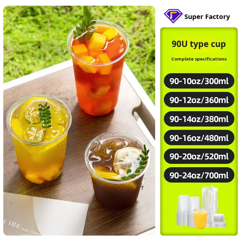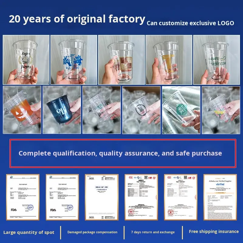 ถ้วยพลาสติกสำหรับสัตว์เลี้ยงแบบใช้แล้วทิ้งพร้อมฝาปิดแก้วน้ำชาและกาแฟหนาสำหรับใช้นำกลับบ้าน