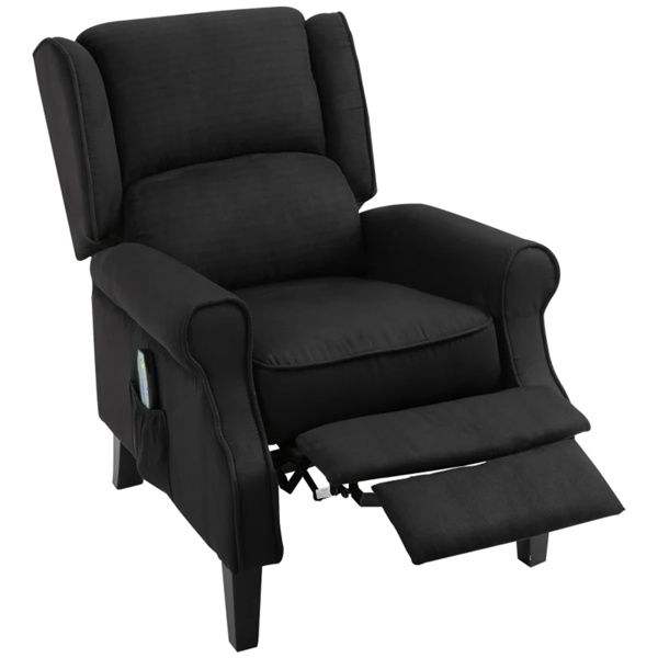 โซฟาแบบมีปีกหลังแบบเดี่ยวมีพนักพิงสีดำมีคุณสมบัติช่วยดันหลังนวดด้วยความร้อนจากการสั่นสะเทือน