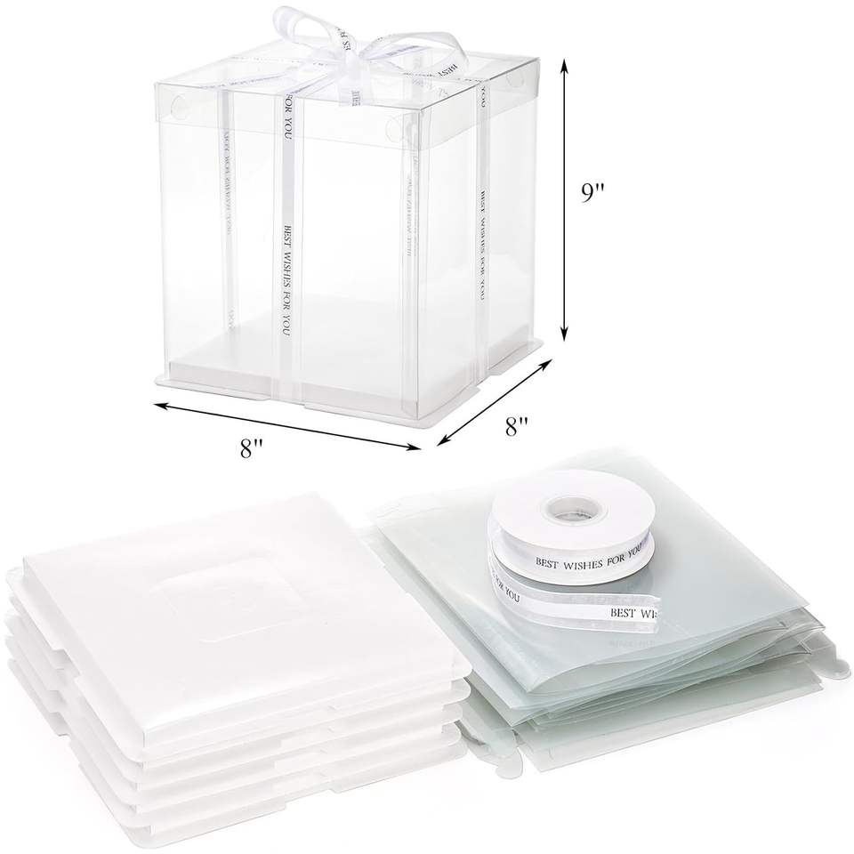 กล่องเค้กแต่งงานแบบใสสีขาว ขนาด 4 6 8 10 นิ้ว สำหรับเบเกอรี่วันเกิด แบบชั้นเดียว สองชั้น สามในหนึ่งเดียว พร้อมหน้าต่างลายนูน สำหรับใส่อาหาร