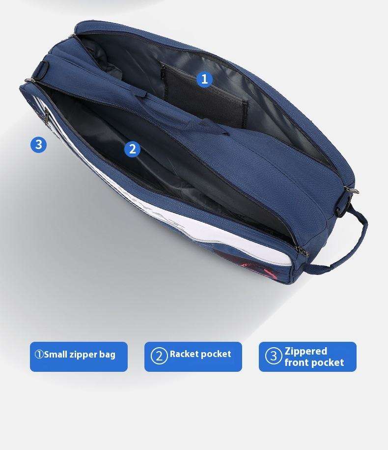 กระเป๋าใส่ไม้แบดมินตัน/เทนนิสแบบสะพายไหล่เดี่ยวหรือคู่ 3 ช่อง ขนาดใหญ่ ผ้าแคนวาส กันน้ำ แบบถือมือ หนา