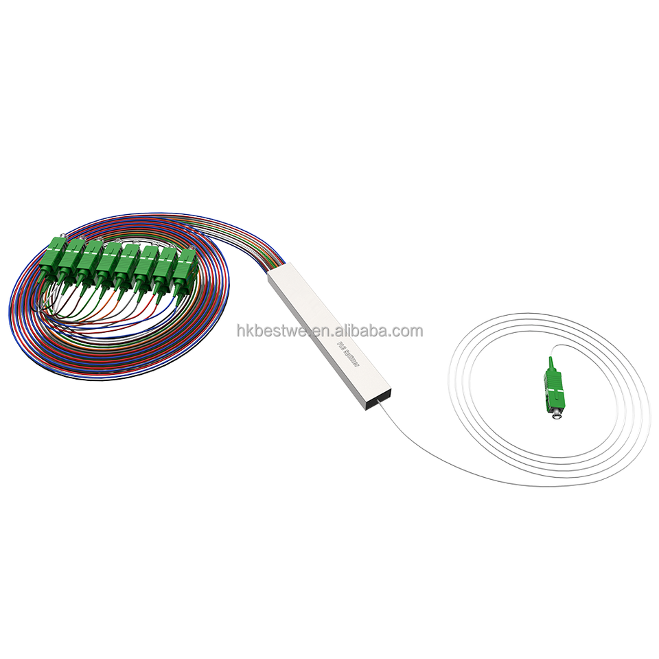 Singlemode ท่อเหล็กแบบไฟเบอร์ออปติก PLC Splitter 1x16พร้อมขั้วต่อ sc/apc สำหรับเครือข่าย4G/5g/3G