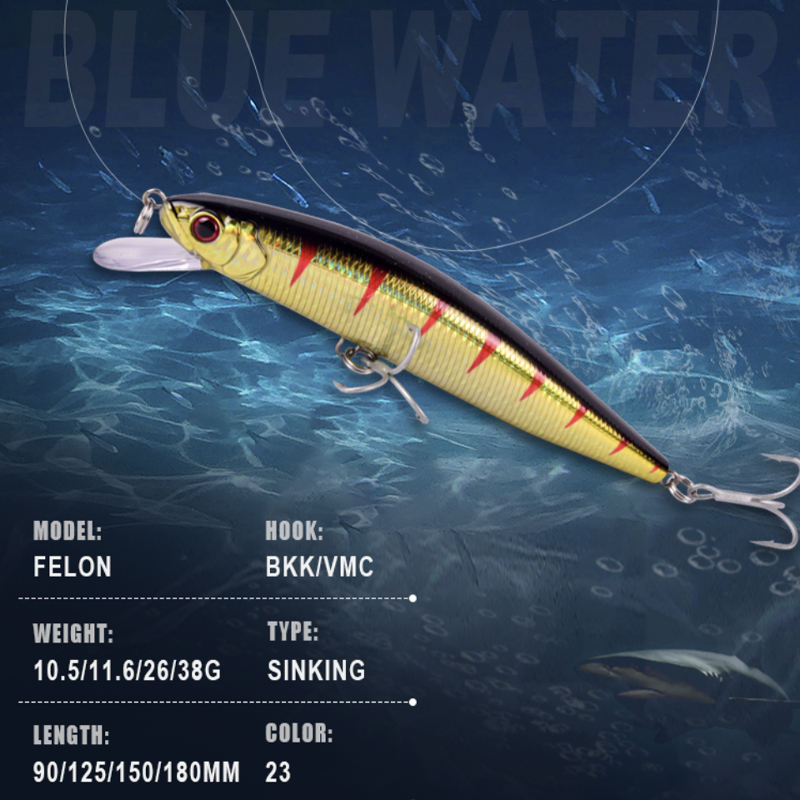 เหยื่อปลอมแบบจมน้ำ ABS สำหรับปลาไพค์ ปลากะพง ปลาแซนเดอร์ ปลาแซลมอน ปลาดุก ปลาแมคเคอเรล ใช้ได้ทั้งน้ำเค็มและน้ำจืด เหยื่อตกปลาแบบว่ายน้ำ เหยื่อแข็ง