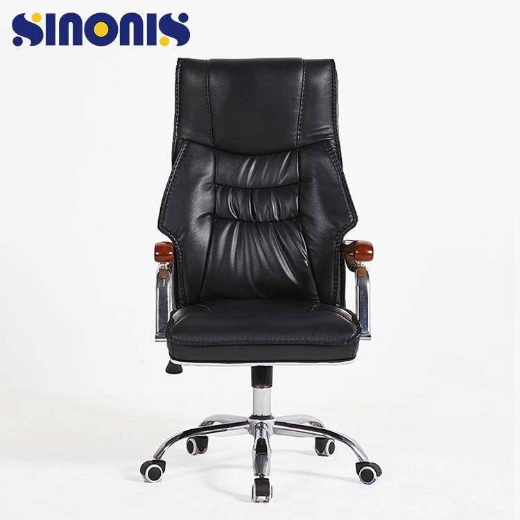 Sinonis เก้าอี้สำนักงานสำหรับผู้บริหารแบบทันสมัยเก้าอี้หมุนปรับได้พนักพิงศีรษะทำจากหนังสังเคราะห์เหล็กโฟม PU ตามหลักสรีรศาสตร์