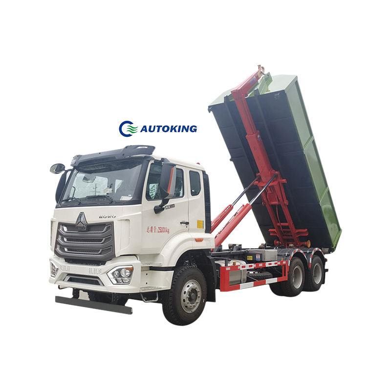 Sinotruck HOWO 6*4 4*2รถยกแขนตะขอไฮดรอลิกพร้อมถังทิ้งขยะ