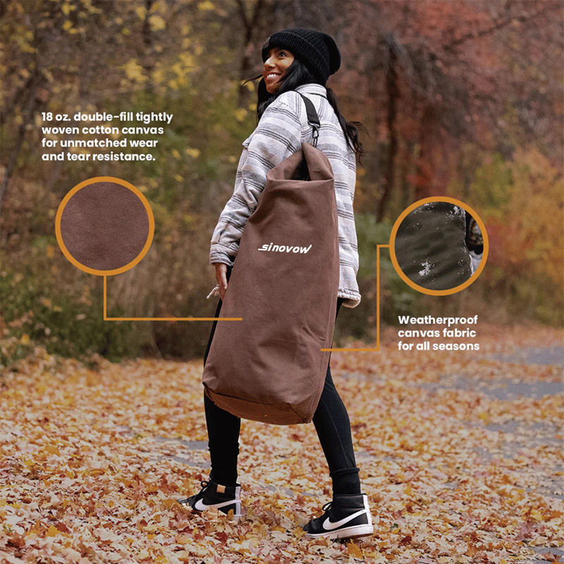 ถุงใบไม้ผ้าใบหนา 18 ออนซ์ Sinovow - ถุงใส่ขยะในสวนแบบใช้ซ้ำได้ ทนทานต่อสภาพอากาศ สำหรับทำความสะอาดกลางแจ้ง พร้อมหูหิ้ว