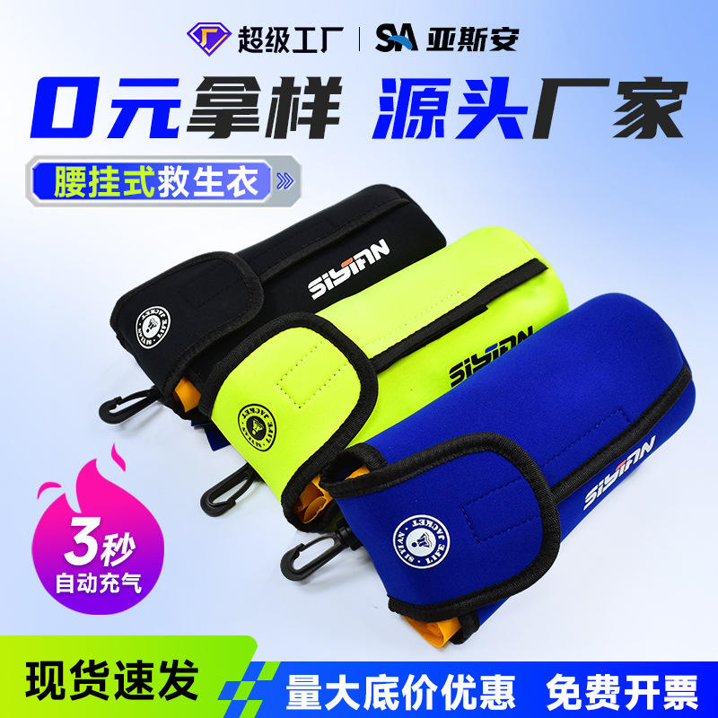เสื้อชูชีพพกพา Sisian สำหรับผู้ใหญ่ แบบพองลมอัตโนมัติ ทำจากนีโอพรีน อุปกรณ์นิรภัยสำหรับการล่องแก่ง ความลอยตัวสูง พร้อมเข็มขัดสำหรับว่ายน้ำ