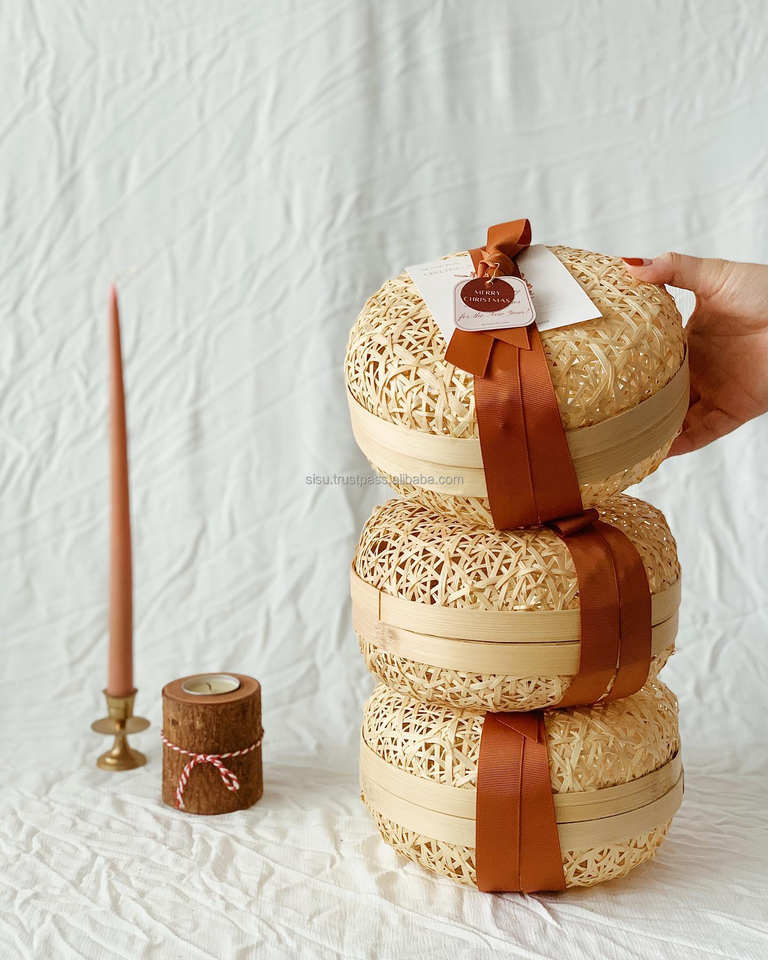 ตะกร้าเก็บของอเนกประสงค์ทำมือจากไม้ไผ่สีเขียวแดงธรรมชาติ ปลอดภัยสำหรับอาหาร เป็นมิตรกับสิ่งแวดล้อม ยี่ห้อซิซูแฮนดิคราฟท์