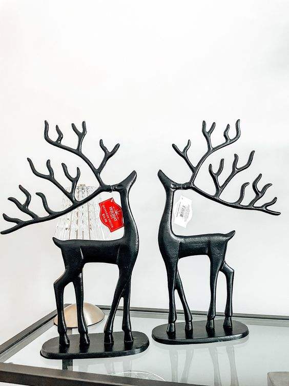 รูปปั้นกวางเรนเดียร์ทำจากเงินรูปปั้นกวางเรนเดียร์แบบนั่งและยืนทำจากอลูมิเนียมหล่อหรูหรารูปปั้นกวางเรนเดียร์คริสต์มาส