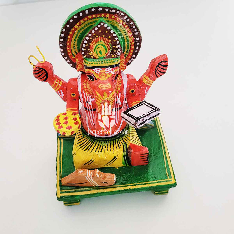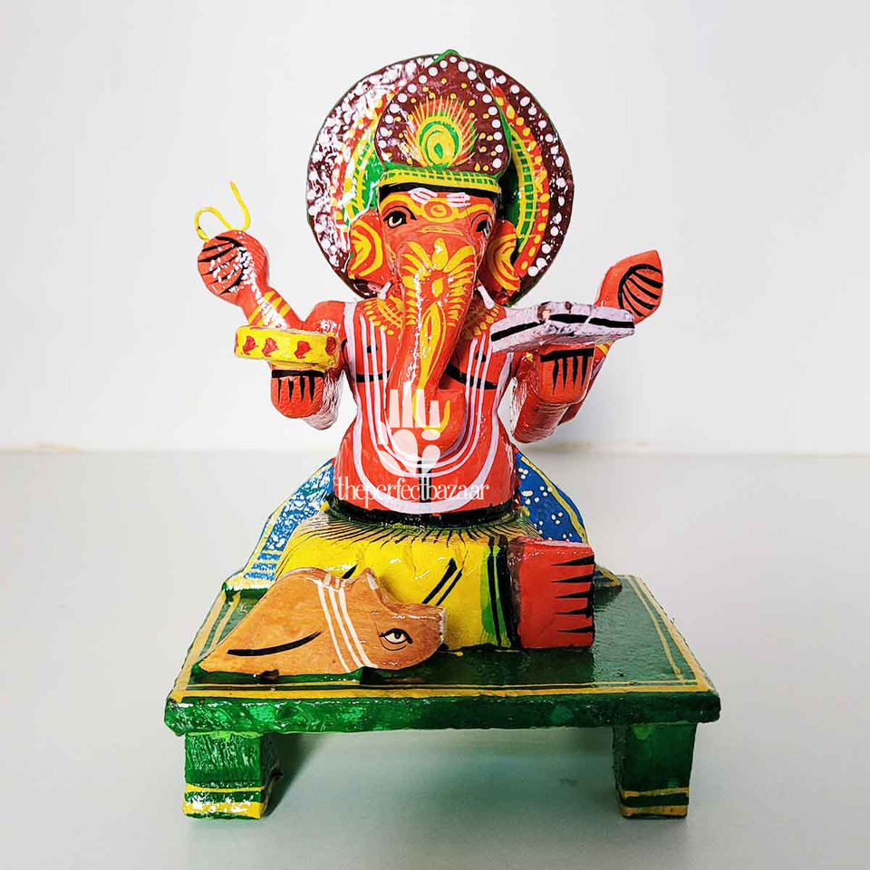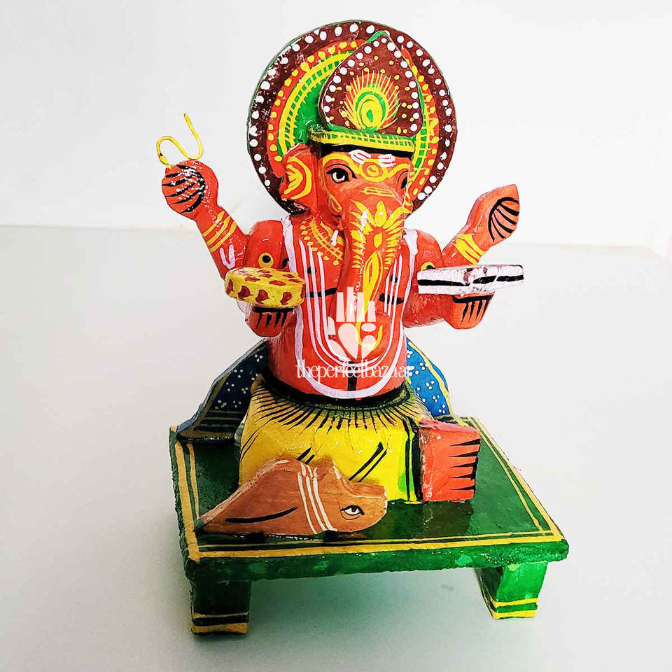 รูปปั้นพระพิฆเนศนั่งทำจากไม้ โดย Theperfectbazaar ผลิตในอินเดีย