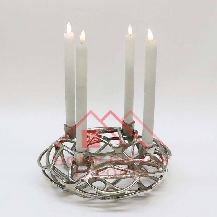 เชิงเทียนโลหะแฮนด์เมดพร้อมด้ามจับด้ามจับดีไซน์รูปกวางสีเงินนิกเกิล
