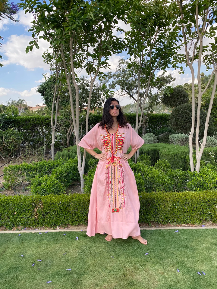 ชุดเดรสผ้าคอตตอนปักลายหลากสีสำหรับผู้หญิง Siwa สีชมพู